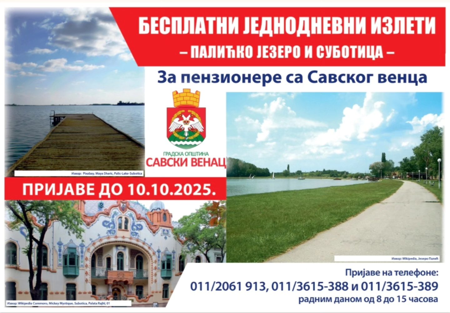 ПОЧЕЛЕ НОВЕ ПРИЈАВЕ ЗА БЕСПЛАТНЕ ЈЕДНОДНЕВНЕ ИЗЛЕТЕ: ПАЛИЋКО ЈЕЗЕРО И СУБОТИЦУ ОБИЛАЗИЋЕ ПЕНЗИОНЕРИ СА САВСКОГ ВЕНЦА