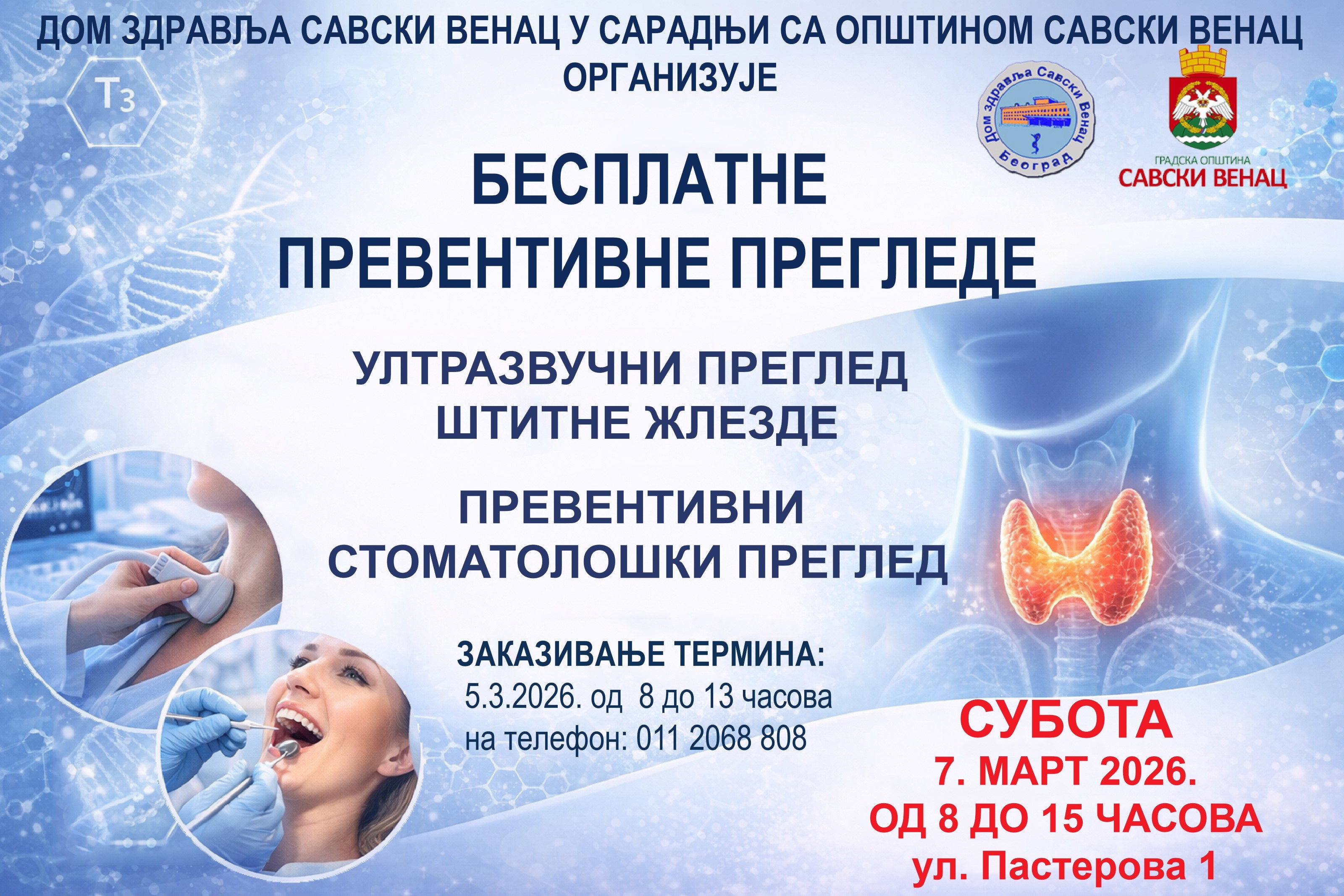 U prostorijama DZ „Savski venac“ (Pasterova 1) građani će biti u prilici besplatno da obave:
