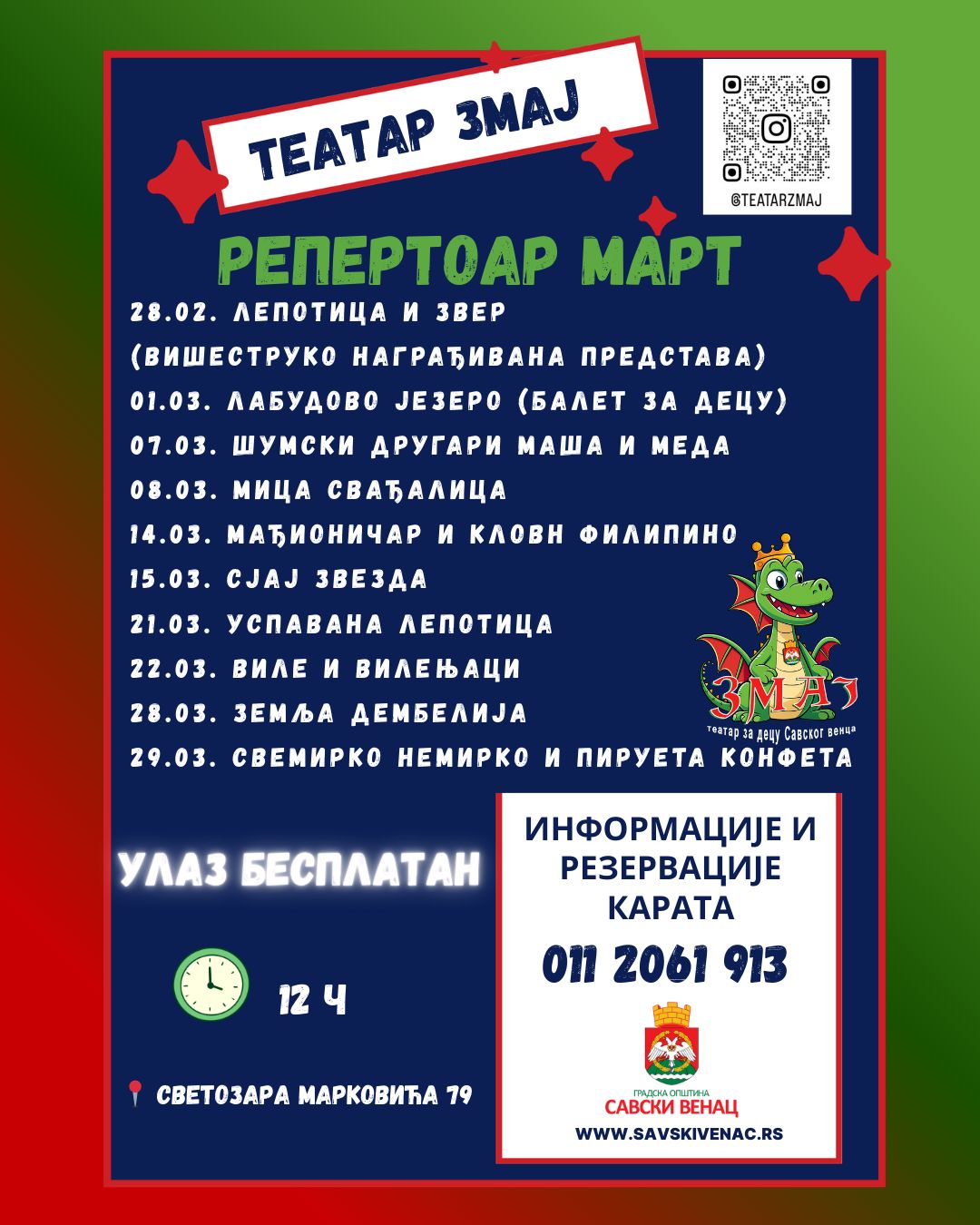 ТЕАТАР „ЗМАЈ“ – РЕПЕРТОАР ЗА МАРТ