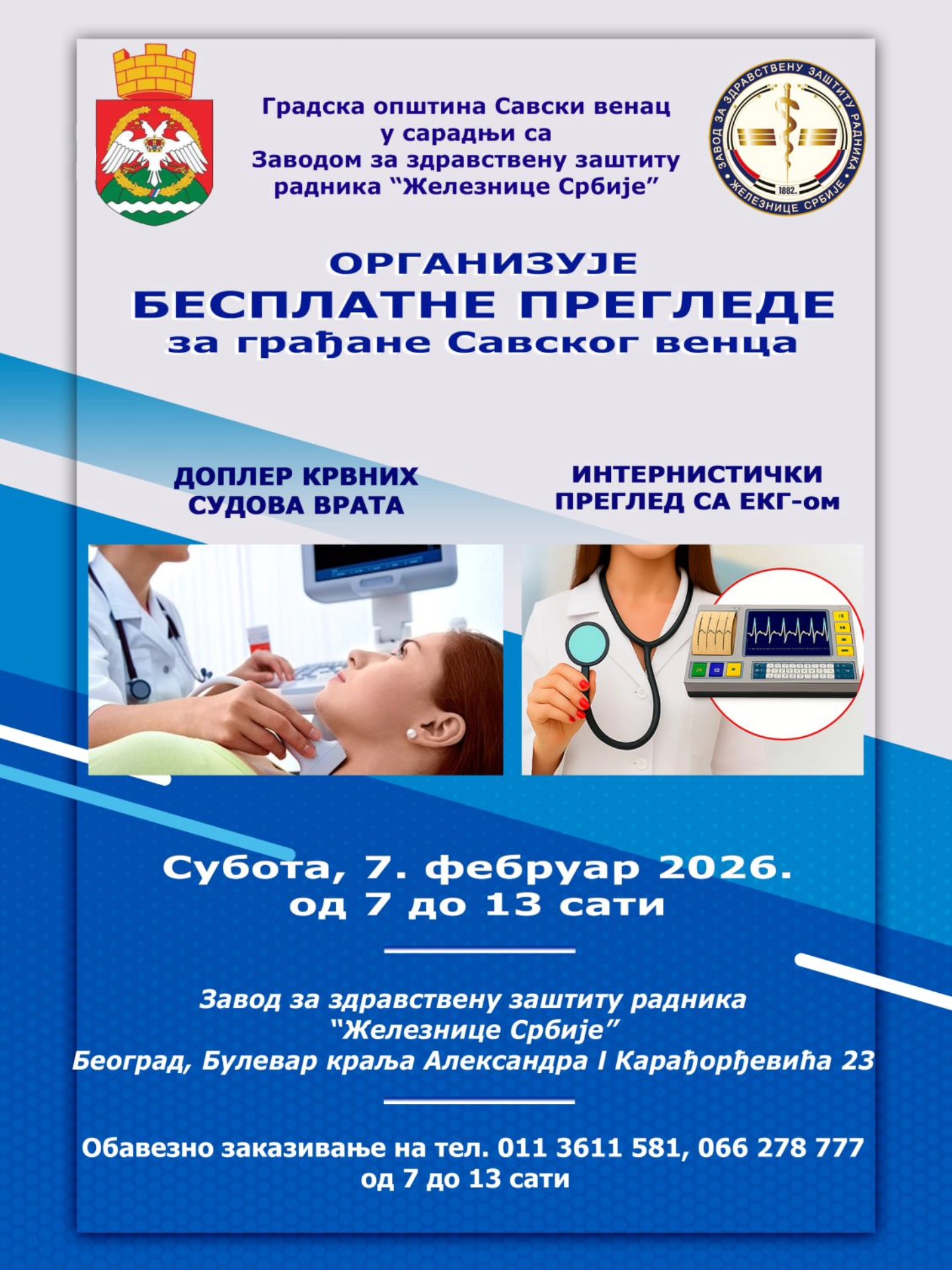 НОВИ БЕСПЛАТНИ ПРЕГЛЕДИ У ЗАВОДУ ,,ЖЕЛЕЗНИЦЕ СРБИЈЕ”