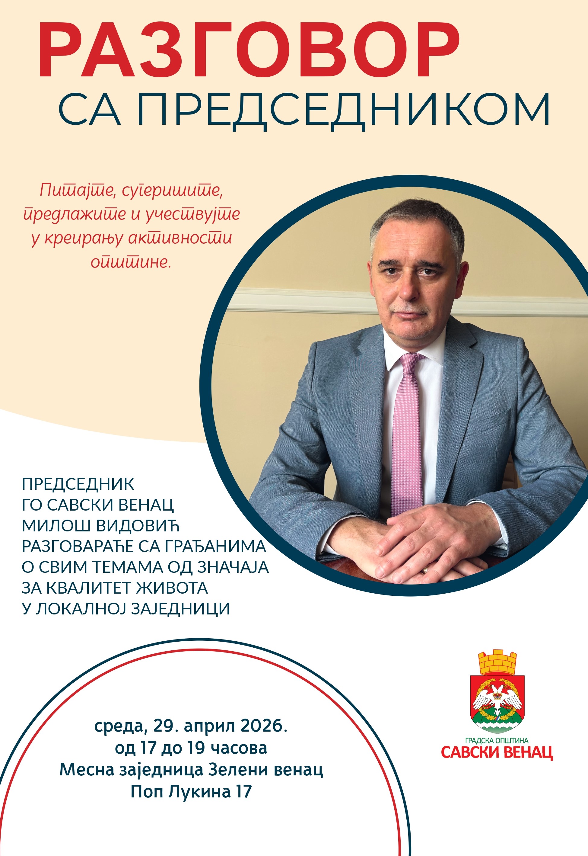 РАЗГОВОР ПРЕДСЕДНИКА ОПШТИНЕ САВСКИ ВЕНАЦ СА ГРАЂАНИМА У МЕСНОЈ ЗАЈЕДНИЦИ „ЗЕЛЕНИ ВЕНАЦ“