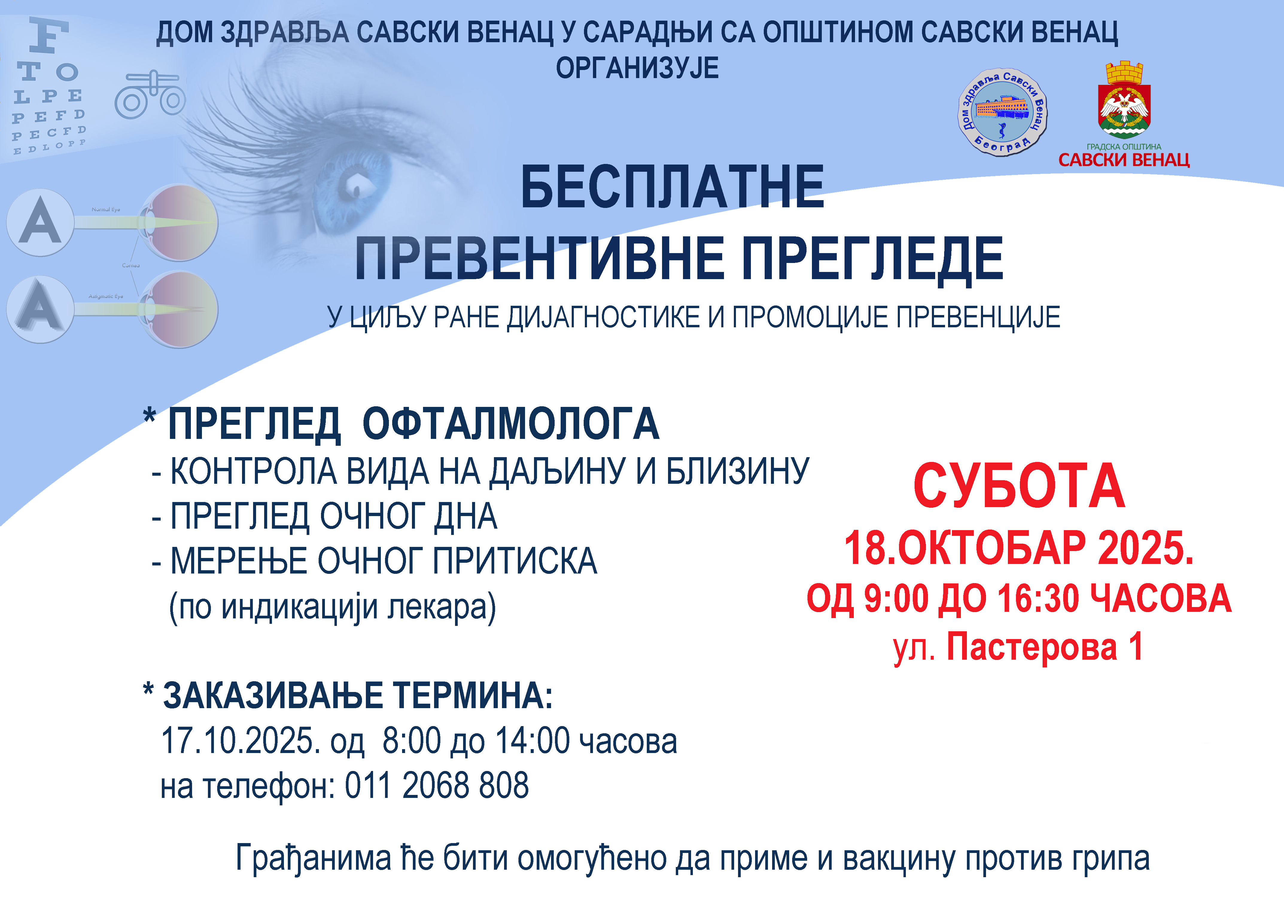 НОВИ БЕСПЛАТНИ ПРЕГЛЕДИ У ДОМУ ЗДРАВЉА „САВСКИ ВЕНАЦ”